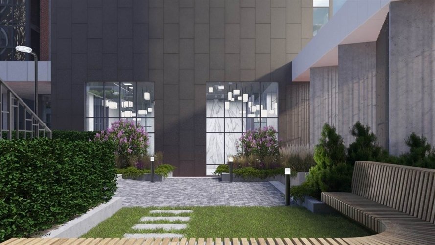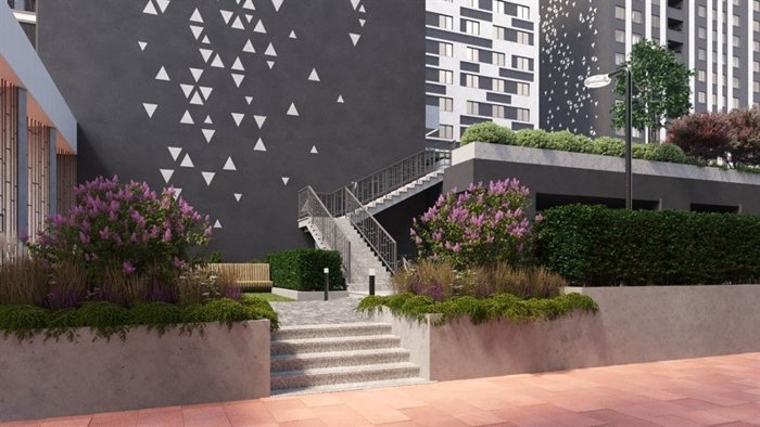 Внутри жилого комплекса благоустроенный двор-парк с многолетними растениями, которые будут радовать жильцов в разное время года