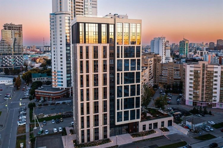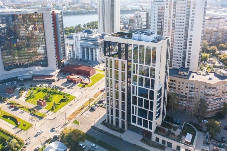 Дом идеально впишется в облик центра Екатеринбург-Сити. Отточенные линии его фасада подчеркнут статусность объекта, а жемчужно-терракотовая цветовая гамма — хороший вкус его владельцев.
