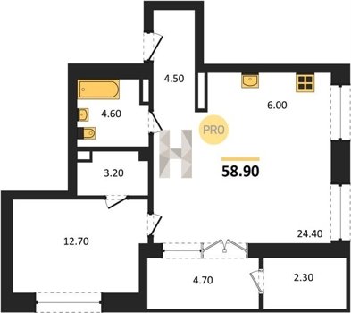Площадь от 55.7 м2