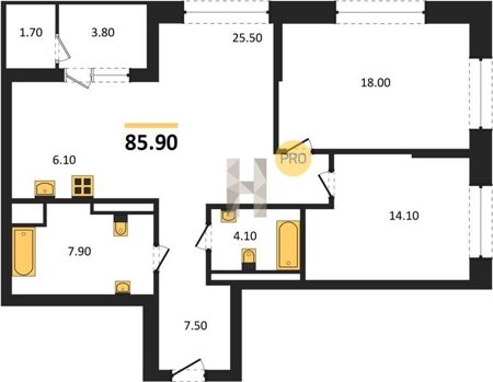 Площадь от 87.2 м2