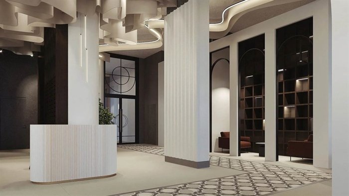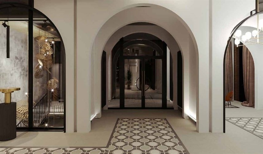 Лобби задаёт настроение. Можно работать, ждать курьера или общаться с соседями — каждому найдётся место. Дизайнерский интерьер выдержан в светлых тонах. Площадь — 141 м², высота потолков — 4,7 м. Предусмотрены санузел и помещение для мытья лап собак.