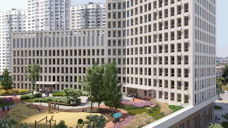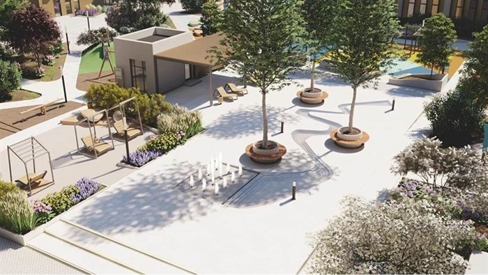 Уютный двор без доступа автомобилей объединит в себе тенистые лаунж-зоны, многофункциональные спортивные площадки и детские игровые зоны для разных возрастов.